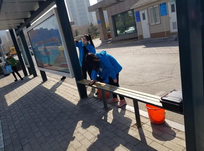 隨后,青年志愿者們又來到社區(qū)公園附近的公交站牌處,掃地、擦拭...“之前等車的時候都是站著,站臺這兒的座位啥時候都是一層土,誰都不愿坐這兒等車!”住在附近的李阿姨坐在被擦拭干凈的候車區(qū)座位上,“終于可以歇歇腳了,真是太感謝這些年輕人了!”青年志愿者用汗水換來了站臺的清潔,受到了過往乘客的一致贊許。