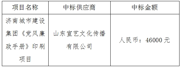 濟南城市建設(shè)集團《黨風(fēng)廉政手冊》印刷項目中標(biāo)公示