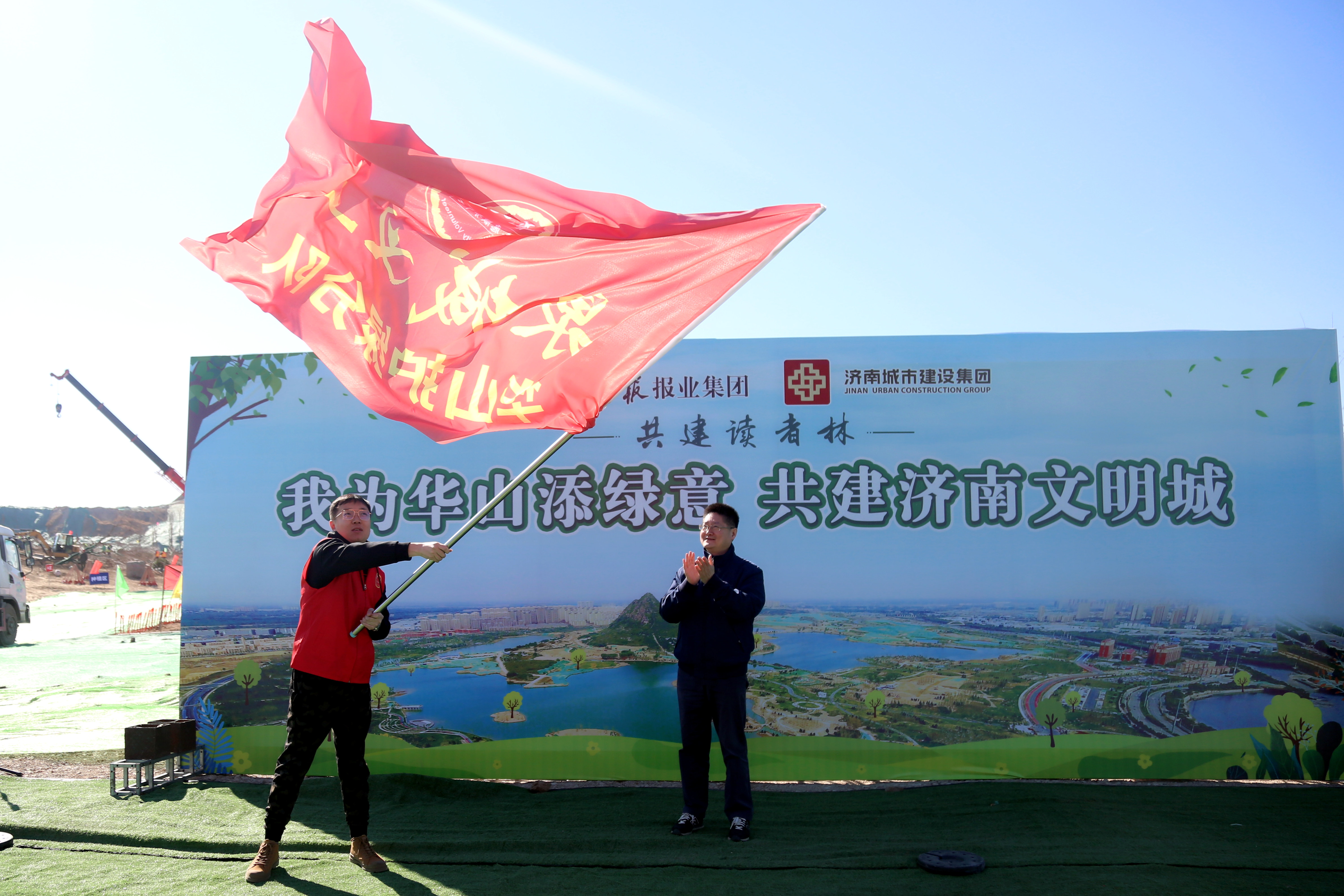 在華山歷史文化濕地公園內(nèi),來自雙方單位的干部職工、泉城義工、小記者代表等共計近500人春種華山,并在華山設(shè)立“記者志愿林”和“愛心林”。濟(jì)南城市建設(shè)集團(tuán)黨委書記、董事長李國祥,濟(jì)南日報報業(yè)集團(tuán)董事長、黨委書記、濟(jì)南日報社社長馬利共同為“記者志愿林”和“愛心林”揭牌。
