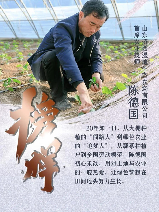 作為黃河流域濟(jì)南段的“綠色明珠”,濟(jì)西濕地四季分明、五彩斑斕。濟(jì)南城市建設(shè)集團(tuán)所屬山東濟(jì)西濕地生態(tài)農(nóng)場有限公司連片的蔬菜大棚里,首席農(nóng)業(yè)技師陳德國早出晚歸、“兩頭不見太陽”,無暇欣賞這近在遲尺的變幻景色,但他卻看得見春耕夏種、秋收冬藏,在深耕細(xì)作中收獲豐收的喜悅。20年如一日,從大棚種植的“闖路人”到綠色農(nóng)業(yè)的“追夢(mèng)人”,從蔬菜種植戶到全國勞動(dòng)模范,陳德國初心未改,用對(duì)土地與農(nóng)業(yè)的一腔熱愛,讓綠色夢(mèng)想在田間地頭努力生長。