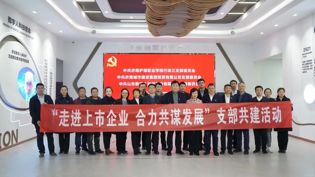 為深化企業之間管理經驗交流,推進黨建、產業、人才和金融的深度融合,11月15日,建設集團投資公司黨支部與濟南護理職業學院行政三支部、山東數字人科技公司黨支部,共同開展“走進上市企業 合力共謀發展”支部共建活動。