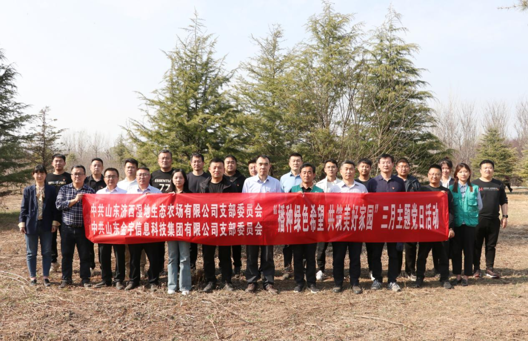 山東金宇信息科技集團黨支部與濟西濕地生態農場黨支部聯合開展“播種綠色希望 共筑美好家園”義務植樹主題黨日活動