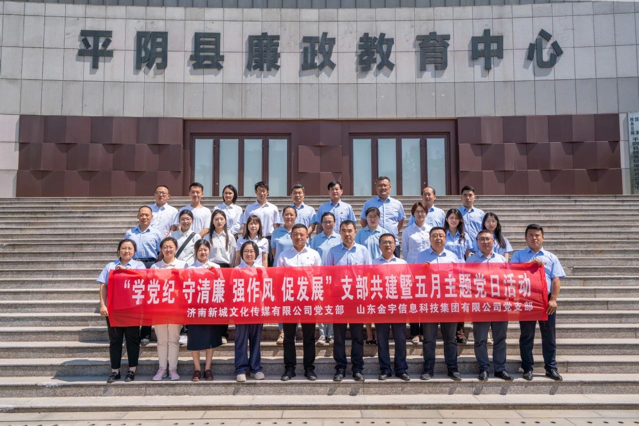 為進一步加強現場警示教育,推動黨紀學習教育走深走實,5月28日,山東金宇信息科技集團黨支部與濟南新城文化傳媒公司黨支部組織黨員赴平陰縣廉政教育中心,開展“學黨紀 守清廉 強作風 促發展”支部共建暨五月主題黨日活動。