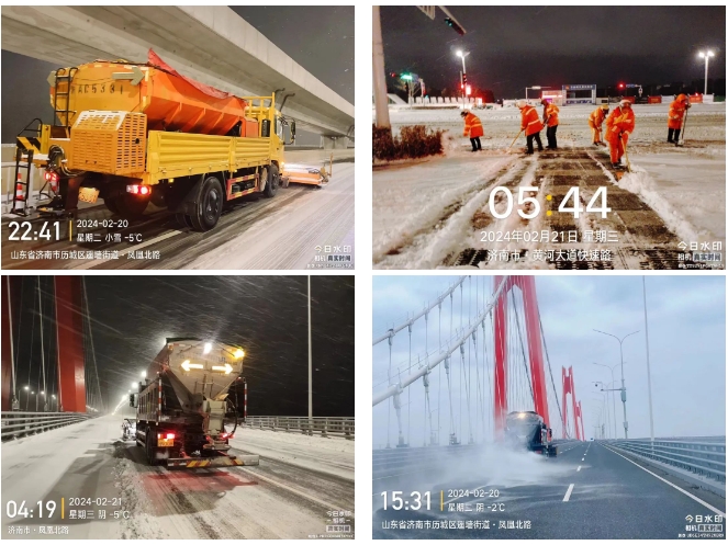 2月20日晚,濟(jì)南迎來明顯降雪天氣,多地降水量達(dá)到了6毫米以上。今天凌晨,濟(jì)南市決定2月21日1時(shí)起,將清雪除冰橙色預(yù)警調(diào)整為紅色預(yù)警,并同步啟動(dòng)Ⅰ級應(yīng)急響應(yīng)。以雪為令,迅速響應(yīng)。建設(shè)集團(tuán)各單位全力應(yīng)對、晝夜不停,對事關(guān)民生保障的各在建及運(yùn)營交通項(xiàng)目和園區(qū)樓宇進(jìn)行及時(shí)除雪除冰,為市民群眾保駕護(hù)航。