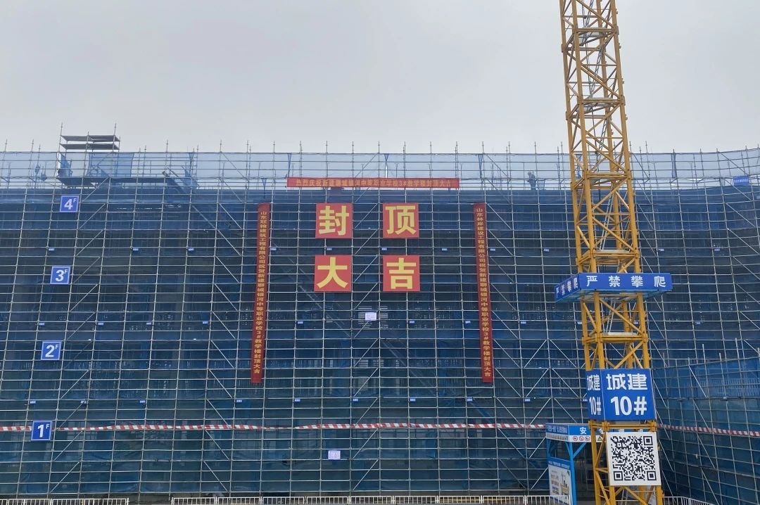 城建集團公司承建的聊城銀河中等職業學校建設項目首棟教學樓封頂