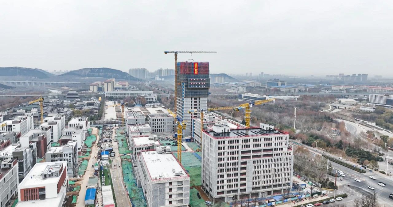 魯澳大健康科技園是“國家中醫藥傳承創新發展試驗區”重點項目,是山東省與澳門在中醫藥領域合作的核心平臺,由濟南市、山東中醫藥大學、澳門科技大學三方聯手打造。項目位于長清區大學路,總建筑面積19.6萬㎡。項目共分為兩個標段,二標段已于2024年5月封頂,當前進行封頂的屬于一標段。