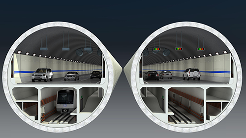 濟濼路穿黃隧道工程位于濟南市中部,工程全長5.1千米,隧道工程長3.68千米,是國內第一條穿越黃河的大型交通隧道,具有工程規模大、技術難度高、系統接口多、施工工期緊等特點,是支撐濟南市“攜河發展”戰略的重要北跨通道之一,隧道采用城市道路與軌道交通M2線同管共建方案,為超大斷面盾構法隧道。道路為雙向六車道城市主干路,設計速度為60km/h,項目估算總投資為517417萬元,建設工期約為45個月,目前項目已啟動建設。